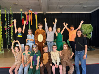 Das Publikum war begeistert und spendete großen Applaus. Die Kulissen wurden von der Kunst AG der 2. Klassen mitgestaltet. Herzlichen Dank an alle Mitwirkenden und Helfer hinter der Bühne!